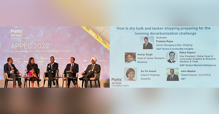 Our Global Director VLCC/PCS John Baptist participated in the APPEC 2022 Shipping Session sharing his insights during the panel on “How is dry bulk and tanker shipping preparing for the looming decarbonization challenge?” with energy leaders, policy makers, financiers and other global players.